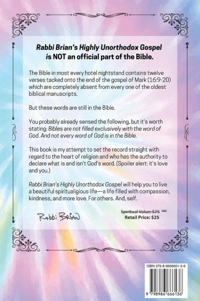A MODERN GUIDE TO COMPASSION, KINDNESS, AND LOVE FOR OTHERS (AND SELF). Weaving humor and scholarship, Rabbi Brian's Highly Unorthodox Gospel is a modern guide to compassion, kindness, and love for others (and self). Rabbi Brian, who left organized religion to teach high school math, wants to remind you that the path is not the goal and what matters is the goal.
