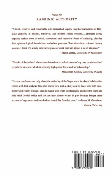 This book examines the nature and sources of the unique authority accorded in Judaism to the Sages of the first five centuries AD. These teachers--often referred to reverentially as Chazal, a Hebrew acronym for "our Sages of blessed memory"--occupy a central and unrivalled position in traditional Judaism. Their statements, collected in the vast corpus of Rabbinic literature, serve as the basis for Halakhah (Jewish law) which developed since the Babylonian Talmud was redacted over thirteen centuries ago. Berger critically examines the notion of the Sages' authority, laying bare the assumptions that undergird it and the implications that follow from it. Berger's purpose is not to justify specific normative claims about talmudic law, but to show the deeply nuanced concept of authority in a textual and interpretive tradition.