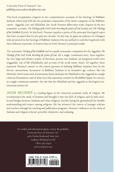 This book recapitulates chapters in two comprehensive accounts of the theology of Rabbinic Judaism, which deal with the two principal components of the native categories of the Rabbinic canon-Aggadah, lore, and Halakhah law. Jacob Neusner abbreviates some chapters in the two systematic accounts, The Theology of the Oral Torah: Revealing the Justice of God (1999) and The Theology of the Halakhah (2001). In this book, Neusner supplies a précis of the principal theological topics that have occupied him for the past two decades. In this way, he gains an audience of colleagues with an interest in the theology of Rabbinic Judaism who are unlikely to read the long books with their elaborate repertoire of sources that set forth Neusner's principal results. The systematic Theology of the Halakhah and its equally systematic companion for the Aggadah, The Theology of the Oral Torah: Revealing the Justice of God, tell a single, continuous story. Seen together, the two large and distinct realms of discourse portray one Judaism: an integrated world-view (Aggadah), way of life (Halakhah), and account of the social entity, Israel. All together, these represent Neusner's answer to the critical question of defining Rabbinic Judaism: how do the diverse, autonomous documents of Rabbinic Judaism in its formative age coalesce, like the Mishnah, which transcends documentary limits and joins the Halakhah to the Aggadah in a single coherent formulation, and of what does that statement consist? In The Rabbinic System, he conveys, as a single continuous narrative, the tale that the Halakhah and the Aggadah as theological constructions jointly tell.
