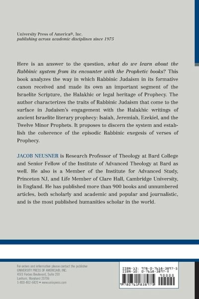 Here is an answer to the question, what do we learn about the Rabbinic system from its encounter with the Prophetic books? This book analyzes the way in which Rabbinic Judaism in its formative canon received and made its own an important segment of the Israelite Scripture, the Halakhic or legal heritage of Prophecy. The author characterizes the traits of Rabbinic Judaism that come to the surface in that Judaism's engagement with the Halakhic writings of ancient Israelite literary prophecy: Isaiah, Jeremiah, Ezekiel, and the Twelve Minor Prophets. It proposses to discern the system and…mehr