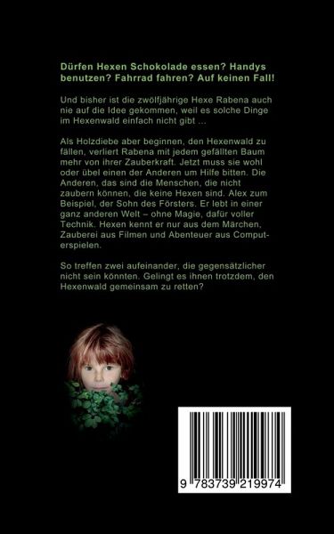 Urban Fantasy Roman für Hexen-Fans ab 8 Jahren. Dürfen Hexen Schokolade essen? Handys benutzen? Fahrrad fahren? Auf keinen Fall!Und bisher ist die zwölfjährige Hexe Rabena auch nie auf die Idee gekommen, weil es solche Dinge im Hexenwald einfach nicht gibt...Als Holzdiebe aber beginnen, den Hexenwald zu fällen, verliert Rabena mit jedem gefällten Baum mehr von ihrer Zauberkraft. Jetzt muss sie wohl oder übel einen der Anderen um Hilfe bitten. Die Anderen, das sind die Menschen, die nicht zaubern können, die keine Hexen sind. Alex zum Beispiel, der Sohn des Försters. Er lebt in einer ganz anderen Welt - ohne Magie, dafür voller Technik. Hexen kennt er nur aus dem Märchen, Zauberei aus Filmen und Abenteuer aus Computerspielen.So treffen zwei aufeinander, die gegensätzlicher nicht sein könnten. Gelingt es ihnen trotzdem, den Hexenwald gemeinsam zu retten?
