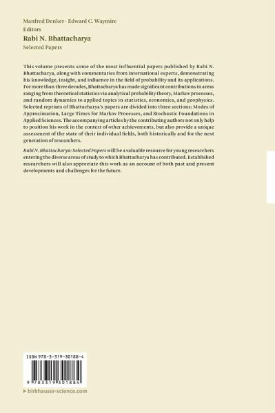 Rabi N. Bhattacharya: Selected Papers will be a valuable resource for young researchers entering the diverse areas of study to which Bhattacharya has contributed. Established researchers will also appreciate this work as an account of both past and present developments and challenges for the future.