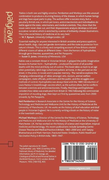 'Rabies is both rare and highly emotive. Pemberton and Worboys use this unusual combination to produce a stunning history of the disease, in which human beings and dogs have equal parts to play. The authors offer a success story, but a peculiarly British one, in which pet lovers, antivivisectionists and individualists do battle against the State, veterinarians, and medical scientists. They show that the issues were never clear-cut, and their dispassionate analysis develops a rich and evocative narrative which is enriched by a series of brilliantly chosen illustrations. This is the social history of medicine at its very best.' - W. F. Bynum, University College London, UK