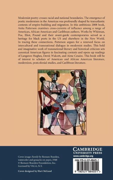 Modernist poetry crosses racial and national boundaries. The emergence of poetic modernism in the Americas was profoundly shaped by transatlantic contexts of empire-building and migration. In this ambitious book, Anita Patterson examines cross-currents of influence among a range of American, African American and Caribbean authors. Works by Whitman, Poe, Eliot, Pound and their avant-garde contemporaries served as a heritage for black poets in the US and elsewhere in the New World. In tracing these connections, Patterson argues for a renewed focus on intercultural and transnational dialogue in modernist studies. This bold and imaginative work of transnational literary and historical criticism sets canonical American figures in fascinating contexts and opens up readings of Langston Hughes, Derek Walcott, and Aime Cesaire. This book will be of interest to scholars of American and African American literature, modernism, postcolonial studies, and Caribbean literature.