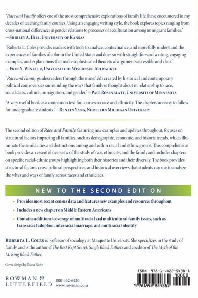 Brief Table of Contents 1. Introduction Overview of the Text Discussion of Key Concepts Resources 2. Approaching the Study of Race and Family Economic Factors Demographic Factors Historical-Legal Factors Resources 3. A Brief History of the American Family American Families through the Centuries Resources 4. Cross-Cultural Comparisons Social or Legal Marriage Marriage Types and Choices Marriage as a Family Affair Family Power Systems Family Functions Resources 5. Family Structures Prevalence of Family Structure from the Child's Perspective Pathways to Single Parenthood Advantages and Disadvantages of Family Structures Extended Family Households Nonfamily Households Resources 6. Gender Relations and Sex Ratios Gender Construction and Socialization Sex Ratios African American Gender Issues Native American Gender Issues Latina/o Gender Issues Asian American Gender Issues Domestic Violence Resources 7. Intergenerational Relationships: Parent and Child Individual and Communal Orientations Effects of Socioeconomic Status on Children's Well-Being Racial Socialization Resources 8 Intergenerational Relationships in Late Life: The Elderly, Their Adult Children, and Their Grandchildren Intergenerational Interaction Caregiving for the Ill Elderly Illness and Death Death Resources 9. African American Families How Did Slavery Shape Black American Families? African American Families after Slavery African American Families Today Resources 10. Native American Families Looking Back in History The State of American Indian Families Today Resources 11. Latino American Families Manner and Timing of Entry Effects of History and Immigration on Socioeconomic Status Familism and Cultural Commonalities Divergent Family Trends among Latino Ethnic Groups Resources 12. Asian American Families East Asians in America Southeast Asians in America Asian American Families Today Resources 13. Middle Eastern American Families Religions in the Middle East Their Immigration History Current Demographics and Family Life Resources 14. Acculturation and Multiracial Family Issues Acculturation Multiracial Issues Resources