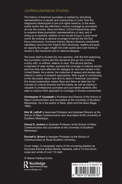 The history of American journalism is marked by disturbing representations of people and communities of color, from the disgraceful stereotypes of pre-civil rights America, to the more subtle myths that are reflected in routine coverage by journalists all over the country. Race and News: Critical Perspectives aims to examine these journalistic representations of race, and in doing so to question whether or not we are living in a post-racial world. By looking at national coverage of stories like the Don Imus controversy, Hurricane Katrina, Barack Obama's presidential candidacy, and even the Virginia Tech shootings, readers are given an opportunity to gain insight into both subtle and overt forms of racism in the newsroom and in national dialogue. The book itself is divided into two sections, with the first examining the journalistic routine and the decisions that go into covering a story with, or without, relation to race. The second section, comprised of case studies, explores the coverage of national stories and how they have impacted the dialogue on race and racism in the United States. As a whole, the collection of essays and studies also reflects a variety of research approaches. With a goal of contributing to the discussion about race and its place in American journalism, this broad examination makes Race and News an ideal text for courses on cultural diversity and the media, as well as making it valuable to professional journalists and journalism students who seek to improve their approach to coverage of diverse communities.