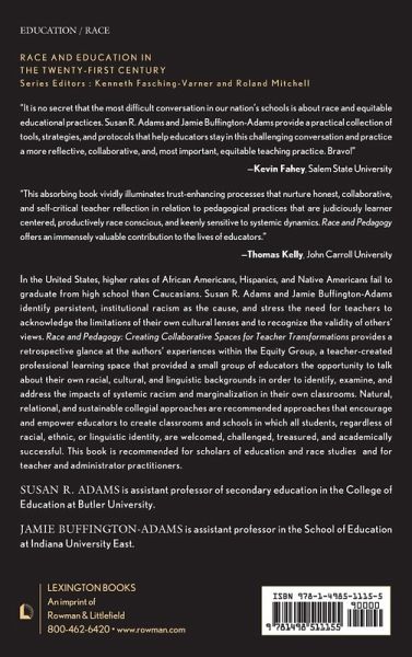 In the United States, higher rates of African Americans, Hispanics, and Native Americans fail to graduate from high schools than Caucasians. Adams and Buffington-Adams identify persistent, institutional racism as the cause, and they stress the need for teachers to acknowledge the limitations of their own cultural lenses and to recognize the validity of others' views. Race and Pedagogy provides a retrospective glance at the authors' experiences within the Equity Group, an organization created to provide teachers with the opportunity to talk about their own racial, cultural, and language backgrounds in order to identify, examine, and fix the failings of the current educational system. Natural, relational, and sustainable approaches are recommended which will enable educators to create classrooms and schools in which all students, regardless of racial, ethnic, or linguistic identity, are welcomed, challenged, treasured, and able to be academically successful. Book recommended for scholars of education and race studies, as well as practitioners.
