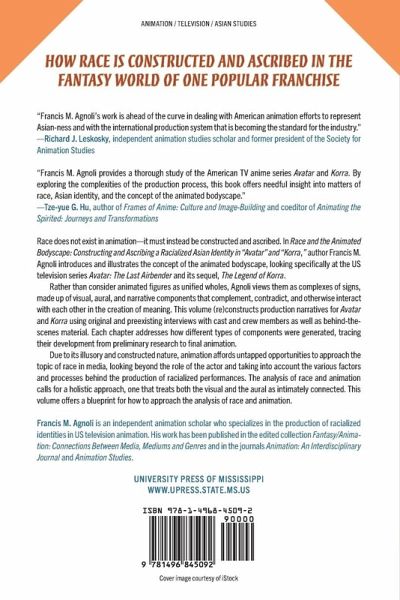 Race does not exist in animation--it must instead be constructed and ascribed. Yet, over the past few years, there has been growing discourse on the intersection of these two subjects within both academic and popular circles. In Race and the Animated Bodyscape: Constructing and Ascribing a Racialized Asian Identity in "Avatar" and "Korra," author Francis M. Agnoli introduces and illustrates the concept of the animated bodyscape, looking specifically at the US television series Avatar: The Last Airbender and its sequel, The Legend of Korra. Rather than consider animated figures as unified wholes, Agnoli views them as complexes of signs, made up of visual, aural, and narrative components that complement, contradict, and otherwise interact with each other in the creation of meaning. Every one of these components matters, as they are each the result of a series of creative decisions made by various personnel across different production processes. This volume (re)constructs production narratives for Avatar and Korra using original and preexisting interviews with cast and crew members as well as behind-the-scenes material. Each chapter addresses how different types of components were generated, tracing their development from preliminary research to final animation. In doing so, this project identifies the interlocking sets of production communities behind the making of animation and thus behind the making of racialized identities. Due to its illusory and constructed nature, animation affords untapped opportunities to approach the topic of race in media, looking beyond the role of the actor and taking into account the various factors and processes behind the production of racialized performances. The analysis of race and animation calls for a holistic approach, one that treats both the visual and the aural as intimately connected. This volume offers a blueprint for how to approach the analysis of race and animation.