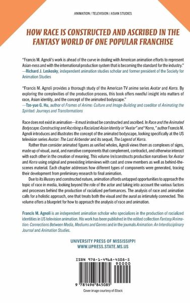 Race does not exist in animation--it must instead be constructed and ascribed. Yet, over the past few years, there has been growing discourse on the intersection of these two subjects within both academic and popular circles. In Race and the Animated Bodyscape: Constructing and Ascribing a Racialized Asian Identity in "Avatar" and "Korra," author Francis M. Agnoli introduces and illustrates the concept of the animated bodyscape, looking specifically at the US television series Avatar: The Last Airbender and its sequel, The Legend of Korra. Rather than consider animated figures as unified wholes, Agnoli views them as complexes of signs, made up of visual, aural, and narrative components that complement, contradict, and otherwise interact with each other in the creation of meaning. Every one of these components matters, as they are each the result of a series of creative decisions made by various personnel across different production processes. This volume (re)constructs production narratives for Avatar and Korra using original and preexisting interviews with cast and crew members as well as behind-the-scenes material. Each chapter addresses how different types of components were generated, tracing their development from preliminary research to final animation. In doing so, this project identifies the interlocking sets of production communities behind the making of animation and thus behind the making of racialized identities. Due to its illusory and constructed nature, animation affords untapped opportunities to approach the topic of race in media, looking beyond the role of the actor and taking into account the various factors and processes behind the production of racialized performances. The analysis of race and animation calls for a holistic approach, one that treats both the visual and the aural as intimately connected. This volume offers a blueprint for how to approach the analysis of race and animation.