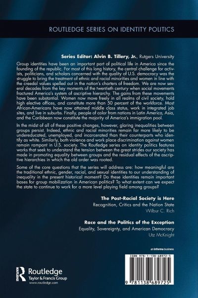 The traditional assumption today about race is that it is not political; that it has no political content and is a matter of individual beliefs and attitudes. In Race and the Politics of the Exception, Utz McKnight argues that race is in fact political and defines how it functions as a politics in the United States. In this book, McKnight engages with important African American fiction from major periods of racial politics in the US. Earlier descriptions of political theory are used throughout these analyses to refine the argument for a new critical politics of race. Scholars of political theory, identity politics, African American studies, and American Studies will find this work ground-breaking and relevant.