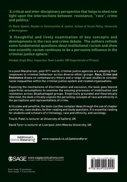 In a post-Macpherson, post-9/11 world, criminal justice agencies are adapting their responses to criminal behaviour across diverse ethnic groups. Race, Crime and Resistance draws on contemporary theory and a range of case studies to consider racial inequalities within the criminal justice system and related organisations. Exploring the mechanisms of discrimination and exclusion, the book goes beyond superficial assumptions to examine the ensuing processes of mobilisation and resistance across disadvantaged groups. Empirically grounded and theoretically informed, the book critically unpicks the persisting concepts of race and ethnicity in the perceptions and representations of crime. Articulate and sensitive, the book clarifies complex ideas through the use of chapter summaries, case studies, further reading and study questions. It is essential reading for students and scholars of criminology, race and ethnicity, and sociology.