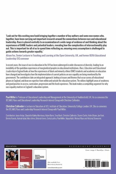 Introduction: Race Education and Educational Leadership in England Christine Callender (UCL Institute of Education University College London UK) and Paul Miller (University of Huddersfield UK) Part I: Curriculum Attainment and Diversity 1. Race and Race Equality: Whiteness in Initial Teacher Education Christine Callender (UCL Institute of Education University College London UK) 2. Male Leaders of African Caribbean Heritage: Leading with Justice and Care to Enhance Black Male Student Dennis Francis (UCL Institute of Education University College London UK) 3. Race Ethnicity and Diversity: British Imperial History and the Secondary School Curriculum Adam Burns (University of Wolverhampton UK) Part II: Talent Management and Career Progression 4. Talent Determination and Resilience: Leadership Accession and Enactment for Black Asian and Minority Ethnic leaders Tony Bush (University of Nottingham UK) 5. Overseas Trained Teachers: Race Origin Qualifications and Career Progression Paul Miller (University of Huddersfield UK) 6. The Lived Experiences of Black Women School Leaders: Barriers to Progression Claudette Bailey-Morrissey (independent consultant) and Richard Race (University of Roehampton UK) 7. Black and Minority Ethnic Staff in Further Education: Progression and Succession Planning Helen Deane (independent consultant) 8. Understanding Race and Educational Leadership in Higher Education: Exploring the Black and Ethnic Minority Experience Jason Arday (University of Roehampton UK) 9. Systemic Changes to Crack the Concrete Ceiling: Initiatives from Advance HE Alice Johns (Advance HE) Jan Fook (Royal Holloway University of London UK) and Vijaya Nath (Advance HE) Part III: Race and Intersectionality 10. Race Religion and School Leadership: The Experience of Muslim- Pakistani Headteachers Asima Iqbal (University of Warwick UK) 11. What Does It Mean to Be 'Successful'?: Narratives of British South-Asian Headteachers and Headgirls Deborah Jones and Geeta Ludhra (Brunel University London UK) 12. Black Women Leaders: Intersectional and Present in the Field of Education 'Hear Our Voice' Sharon Curtis (independent consultant) and Victoria Showunmi (UCL Institute of Education University College London UK) Concluding Remarks: Agenda-Setting Research: Theory Practice Paul Miller (University of Huddersfield UK) and Christine Callender (UCL Institute of Education University College London UK) References Index