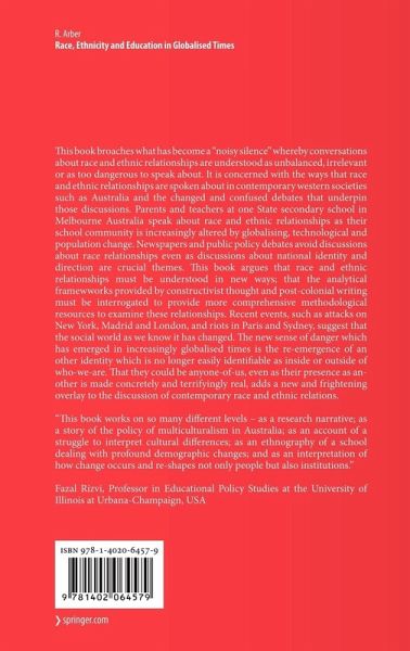 This book provides a research narrative of the way an urban school community speaks about race and ethnic relationships in times of change. It analyses the history of multicultural policy and practice in Australia. Coverage also discusses the struggle to understand identity and race and cultural difference and presents a comprehensive methodological framework to explore the complex interactions that shape race and ethnic relationships.