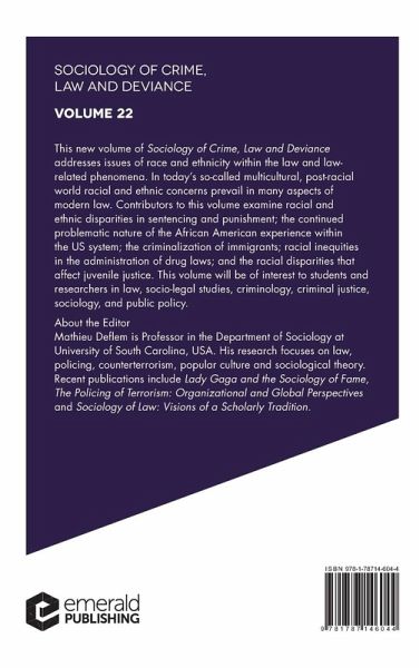 This new volume of Sociology of Crime, Deviance and Law addresses issues of race and ethnicity within the law and law-related phenomena.
