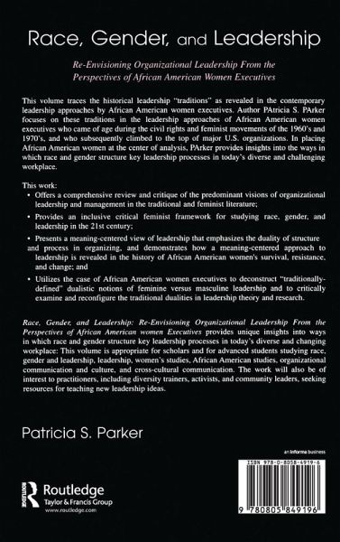 Much has been written about a model of leadership that emphasizes women's values and experiences, that is in some ways distinct from male models of leadership. This book redirects the focus to a view of leadership as a multicultural phenomenon that moves beyond dualistic notions of "masculine" and "feminine" leadership, and focuses more specifically on leadership as the management of meaning, including the meanings of the notion of "organizational leader." This volume focuses on leadership "traditions" revealed in the history of Black women in America and exemplified in the leadership approaches of 15 African American women executives who came of age during the civil rights and feminist movements of the 1960's and 1970's and climbed to the top of major U.S. organizations. It advances a vision of organizational leadership that challenges traditional masculine and feminine notions of leadership development and practice, providing insights on organizational leadership in the era of post-industrialization and globalization. Additionally, by placing African American women at the center of analysis, this book provides insights into the ways in which race and gender structure key leadership processes in today's diverse and changing workplace. It is a must-read for scholars and researchers in organizational communication, management, leadership, African American studies, and related areas.