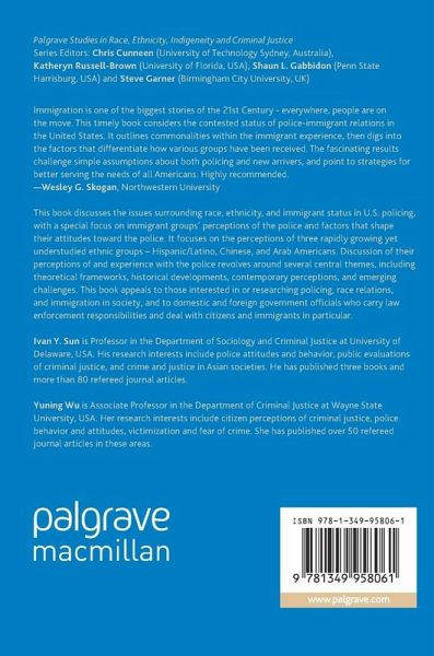 "Sun (Univ. of Delaware) and Wu (Wayne State) focus on Latino, Chinese, and Arab immigrants' perceptions of police in the US and the various factors that shape their views. They provide a summary of research available on the topic and report on their own scholarly work. ... Given the rise of xenophobia in the US and increased use of local police to enforce immigration laws, this is a timely book. ... Summing Up: Recommended. Upper-division undergraduates through faculty." (M. Escobar, Choice, Vol. 56 (03), 2018)