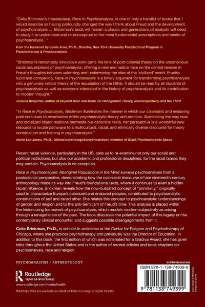 Race in Psychoanalysis analyzes the often-unrecognized racism in psychoanalysis by examining how the colonialist discourse of late nineteenth-century anthropology made its way into Freud's foundational texts, where it has remained and continues to exert a hidden influence. Recent racial violence, particularly in the US, has made many realize that academic and professional disciplines, as well as social and political institutions, need to be re-examined for the racial biases they may contain. Psychoanalysis is no exception.