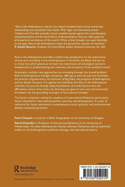 Race in the Anthropocene calls for the radical transformation of the world that slaveholding and colonialism have made. With rigor and theoretical power, Chipato and Chandler provide a much-needed riposte against the racial fantasies of posthumanism and the facile forms of decolonization that too often grip the philosophical summations of this world. While critical thought can seem beholden to the past, Race in the Anthropocene clears the ground for a praxis of invention.