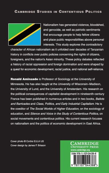 Nationalism has generated violence, bloodshed, and genocide, as well as patriotic sentiments that encourage people to help fellow citizens and place public responsibilities above personal interests. This study explores the contradictory character of African nationalism as it unfolded over decades of Tanzanian history in conflicts over public policies concerning the rights of citizens, foreigners, and the nation's Asian racial minority. These policy debates reflected a history of racial oppression and foreign domination and were shaped by a quest for economic development, racial justice, and national self-reliance.