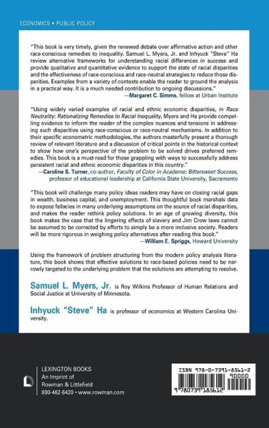 There are wide racial disparities in virtually every sphere of economic life. African American workers earn less than whites. They are more likely to be denied loans than whites. Minority-owned businesses are less likely to win lucrative bids on state and federal contracts than are white male owned businesses. Black children are more likely than whites to be reported to child protective services for neglect or abuse. There are even huge disparities in downing rates between blacks and whites. What to do about these disparities? There is a fundamental disagreement about the appropriate remedies to these varied indicators of racial inequality. Part of the disagreement stems from differences in public perceptions about the underlying causes of the inequality. But, another form of disagreement relates to the opposition to the remedy of choice during much of the 1970s and 1980s: Affirmative Action. Race conscious remedies -- like affirmative action policies in hiring, college admissions, and business contracting -- suffer from legal and constitutional challenges, compounded by hostility from the majority of Americans. The alternative - race-neutral remedies - attempt to address racial disparities without directly targeting benefits exclusively to racial minority group members. In doing so, race-neutral remedies putatively help minorities without hurting majority group members. The authors of Race Neutrality: Rationalizing Remedies to Racial Inequality make the case that policy analysts should shift from a focus on whether a remedy is race-conscious or not to a focus on the underlying problem that the alternative remedies is attempting to resolve. This type of rethinking of the problem of racial inequality will reveal that sometimes race-neutral remedies hold great promise in reducing disparities. Often, however, race-neutral remedies fail to do what they are intended to do. The authors challenge the reader to think about why race-neutral remedies-while desireable on their face-might fail to resolve protracted and persistent patterns of racial inequality in market and non-market contexts.