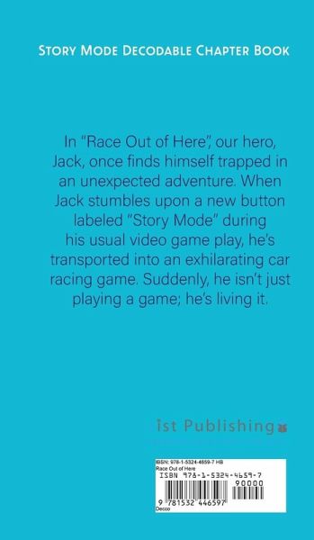Race Out of Here and into a thrilling addition to the ""Story Mode"" series - a collection of decodable chapter books designed for beginning readers from grades 2-6. In this series, children just starting to read can sharpen their reading skills with simple words, all the while enjoying the high-stakes plots set in the fascinating world of video games. In ""Race Out of Here"", our hero, Jack, once finds himself trapped in an unexpected adventure. When Jack stumbles upon a new button labeled ""Story Mode"" during his usual video game play, he's transported into an exhilarating car racing game. Suddenly, he isn't just playing a game; he's living it. From feeling the grip of the steering wheel in his hands to the rush of cars zooming past him, Jack is no longer at his desk. He's in the driver's seat of a roaring race car on a real track. This isn't a game he can pause or reset. It's a race he must win. Experience the thrill of the race with Jack as he learns to navigate the car, compete with other racers, and push towards victory. With each chapter, young readers will follow Jack's journey, overcoming challenges, picking up crucial skills, and gaining the confidence to face the unexpected. Along the way, they'll also reinforce their own reading skills, turning decoding into a natural and enjoyable activity. Whether it's real or just a game, Jack's heart-pounding race is one readers won't soon forget. Get ready to buckle up and ""Race Out of Here"" with Jack!