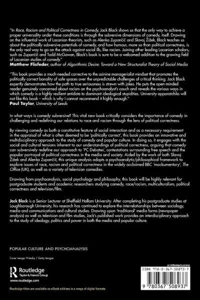 "This book provides a much-needed corrective to the asinine managerialist mindset that promotes the politically correct banality of safe spaces over the unpredictable challenges of critical thinking. Jack Black expertly demonstrates how the path to true seriousness is strewn with jokes. He puts the open-minded reader genuinely concerned about racism on the psychoanalyst's couch and reveals the various ways in which comedy is a highly resilient antidote to dominant ideological stupidities. University apparatchiks will not like this book - which is why I cannot recommend it highly enough." - Paul Taylor, University of Leeds