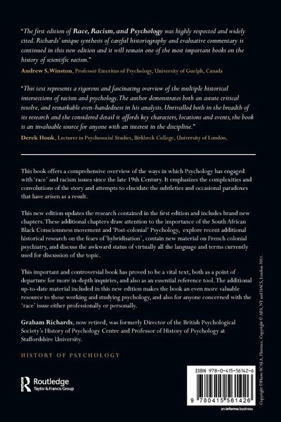 This book offers a comprehensive overview of the ways in which Psychology has engaged with 'race' and racism issues since the late 19th century. It emphasizes the complexities and convolutions of the story and attempts to elucidate the subtleties and occasional paradoxes that have arisen as a result. This new edition updates the research contained in the first edition and includes brand new chapters. These additional chapters draw attention to the importance of the South African Black Consciousness movement and 'Post-colonial' Psychology, ¿explore recent additional historical research on the fears of 'hybridisation', contain new material on French colonial psychiatry, and discuss the awkward status of virtually all the language and terms currently used for discussion of the topic. This important and controversial book has proved to be a vital text, both as a point of departure for more in-depth inquiries, and also as an essential reference tool.The additional up-to-date material included in this new edition makes the book an even more valuable resource to those working in and studying psychology, and also for anyone concerned with the 'race' issue either professionally or personally.