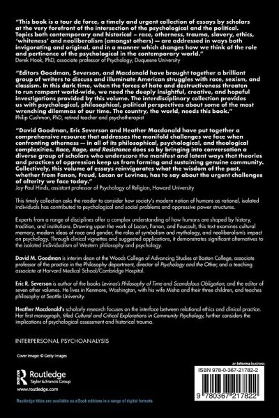 Preface Notes on Contributors Introduction: Intergenerational Strains Chapter 1. Open Wounds: Discerning, Owning, and Narrating Deep History Chapter 2. Frantz Fanon and Psychopathology: The Progressive Infrastructure of Black Skin, White Masks Chapter 3. American Cultural Symbolism of Rage and Resistance in Collective Trauma: Racially-Influenced Political Myths, Counter-Myths, Projective Identification, and the Evocation of Transcendent Humanity Chapter 4. Neoliberalism and the Ethics of Psychology Chapter 5. Black Rage and White Listening: On the Psychologization of Racial Emotionality Chapter 6. Jouissance and Discontent: A Meeting of Psychoanalysis, Race and American Slavery Chapter 7. The Nasty Woman: Destruction and the Path to Mutual Recognition Chapter 8. Another Voice from Radical Ethics: Denmarks Knud Løgstrup Chapter 9. Identity-as-disclosive-space: Dasein, Discourse and Distortion Chapter 10. Finding the Other in the Self Chapter 11. After the World Collapsed: Two Culturally Embedded Forms of Service to Others Following Wide-Scale Societal Traumas
