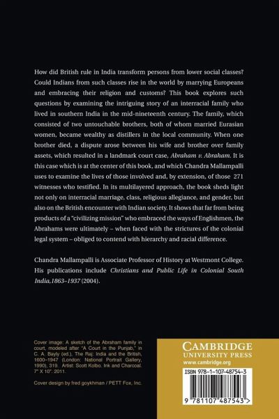 How did British rule in India transform persons from lower social classes? Could Indians from such classes rise in the world by marrying Europeans and embracing their religion and customs? This book explores such questions by examining the intriguing story of an interracial family who lived in southern India in the mid-nineteenth century. The family, which consisted of two untouchable brothers, both of whom married Eurasian women, became wealthy as distillers in the local community. A family dispute resulted in a landmark court case, Abraham v. Abraham. Chandra Mallampalli uses this case to examine the lives of those involved, and shows that far from being products of a 'civilizing mission' who embraced the ways of Englishmen, the Abrahams were ultimately - when faced with the strictures of the colonial legal system - obliged to contend with hierarchy and racial difference.
