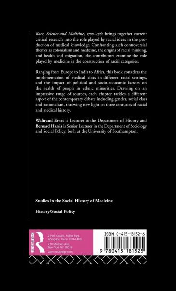 Considering cases from Europe to India, this collection brings together current critical research into the role played by racial issues in the production of medical knowledge. Confronting such controversial themes as colonialism and medicine, the origins of racial thinking and health and migration, the distinguished contributors examine the role played by medicine in the construction of racial categories.