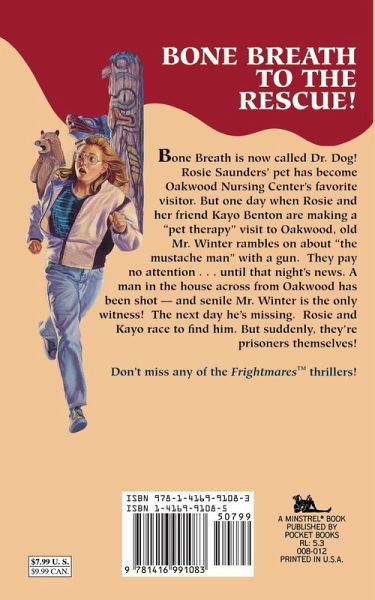 Bone Breath to the rescue! Bone Breath is now called Dr. Dog! Rosie Saunders' pet has become Oakwood Nursing Center's favorite visitor. But one day when Rosie and her friend Kayo Benton are making a "pet therapy" visit to Oakwood, old Mr. Winters rambles on about "the mustache man" with a gun. They pay no attention...until the night's news. A man in the house across from Oakwood has been shot -- and senile Mr. Winter is the only witness! The next day he's missing. Rosie and Kayo race to find him. But suddenly, they're prisoners themselves!