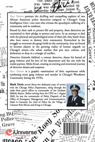 Race Traitors portrays the thrilling and compelling exploits of two African American police detectives assigned to Chicago's Gang Intelligence Unit-two men who witness the apocalyptic suffering of a community and its residents. Bound by their oath to protect life and property, these detectives are committed to their pledge to protect and serve. In an attempt to deal with the physical and psychological stress of their job, they battle those who have sworn to destroy their community. Entrenched in the struggle to overcome the gang's hold on the community, they are forced to become players in the growing reality of human anguish on Chicago's streets-the urban warfare that pits race, culture, and dedication to duty in a triangle of conflict. Detective Aristotle Ashford, a veteran detective, shares his hatred of gang violence and his love of the department and the city with his rookie partner, Myles Sivad, creating an exciting and emotional journey of detective drama and suspense. Race Traitors is a graphic examination of their experiences while combating street gang violence and murder in Chicago's Woodlawn Community during the 1970's.