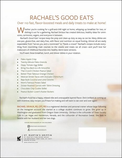 RACHAEL DEVAUX is a registered dietitian and personal trainer with a loyal community on Instagram. She grew up in Washington and graduated from Oregon State University, where she started the Rachael's Good Eats Instagram account as a college student. She now shares recipes, intuitive eating strategies, and simple, effective workouts with more than 650,000 followers. DeVaux lives in Seattle.