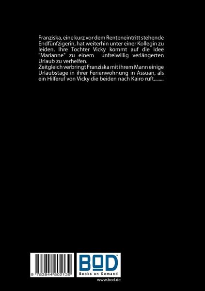 Franziska, eine kurz vor dem Renteneintritt stehende Endfünfzigerin, hat weiterhin unter einer Kollegin zu leiden. Ihre Tochter Vicky kommt auf die Idee "Marianne" zu einem unfreiwillig verlängerten Urlaub zu verhelfen. Zeitgleich verbringt Franziska mit ihrem Mann einige Urlaubstage in ihrer Ferienwohnung in Assuan, als ein Hilferuf von Vicky die beiden nach Kairo ruft........