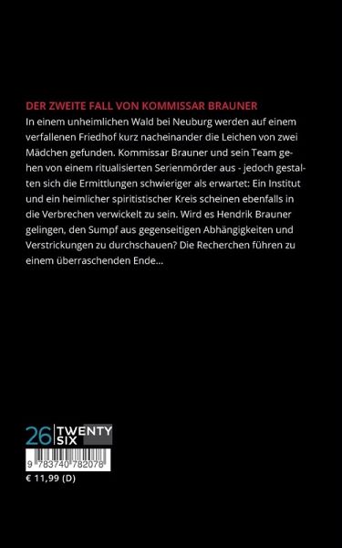 Der zweite Fall von Kommissar Brauner In einem unheimlichen Wald bei Neuburg werden auf einem verfallenen Friedhof kurz nacheinander die Leichen von zwei Mädchen gefunden. Kommissar Brauner und sein Team gehen von einem ritualisierten Serienmörder aus - jedoch gestalten sich die Ermittlungen schwieriger als erwartet: Ein Institut und ein heimlicher spiritistischer Kreis scheinen ebenfalls in die Verbrechen verwickelt zu sein. Wird es Hendrik Brauner gelingen, den Sumpf aus gegenseitigen Abhängigkeiten und Verstrickungen zu durchschauen? Die Recherchen führen zu einem überraschenden Ende...
