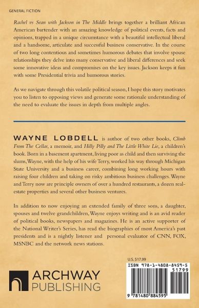Rachel vs Sean with Jackson in The Middle brings together a brilliant African American bartender with an amazing knowledge of political events, facts and opinions, trapped in a unique circumstance with a beautiful intellectual liberal and a handsome, articulate and successful business conservative. In the course of two long contentious and sometimes humorous debates that involve spouse relationships they delve into many conservative and liberal differences and seek some innovative ideas and compromises on the key issues. Jackson keeps it fun with some Presidential trivia and humorous stories.…mehr