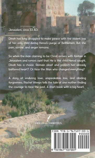 Jerusalem, circa 33 AD: Dinah has long struggled to make peace with the violent loss of her only child during Herod's purge of Bethlehem. But the pain, sorrow, and anger remains. So when the man claiming to be Christ arrives with fanfare in Jerusalem and rumors swirl that He is the child Herod sought, Dinah has a choice. Remain aloof and protect her already battered heart? Or face the Man who changed everything? A story of enduring love, unspeakable loss, and abiding forgiveness, Rachel Weeps tells the tale of one mother finding the courage to face the past. A short book with a big heart.