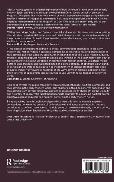 "Racial Apocalypse is an original exploration of how concepts of race emerged in early modern Spain and England through the belief that Christ would establish an eternal kingdom. Villagrana illustrates how a form of white supremacy emerges as Spanish and English Christians struggled to understand how indigenous peoples and Black Africans might be incorporated into the kingdom of God. This book will importantly add to our understanding of how religious doctrine informs racial formation and racism." -- Dennis Austin Britton, University of New Hampshire