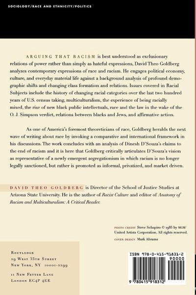 Arguing That Racism is the best understood as exclusionary relations of power rather than simply as hateful expressions, David Theo Goldberg analyzes contemporary expressions of race and racism. He engages in political economy, culture, and everyday material life against a background analysis of profound demographic shifts and changing class formation and relations.