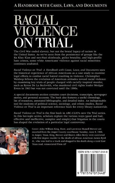 An examination of the historical experience of African Americans as a case study of America's legacy of racial violence. In this comprehensive overview of how the law has been used to combat racism, author Christopher Waldrep points out that the U.S. government has often promoted discrimination. A veritable history of civil rights, the story is told primarily through a discussion of key legal cases. Racial Violence on Trial also presents 11 key documents gathered together for the first time, from the Supreme court's opinion in Brown v. Mississippi to a 1941 newspaper account entitled The South Kills Another Negro, to a 1947 New Yorker piece, Opera in Greenville, about a crowd of taxi drivers who killed a black man. Also included are a listing of key people, laws, and concepts; a chronology; a table of cases; and an annotated bibliography.