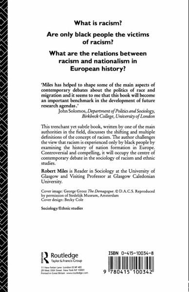 This trenchant yet subtle book, written by one of the main authorities in the field, discusses the shifting and multiple definitions of the concept of racism. The author challenges a common academic and everyday conception that racism is experienced exclusively by black people. Controversial and compelling it will occupy the centre of contemporary debate in the sociology of racism and ethnic studies.