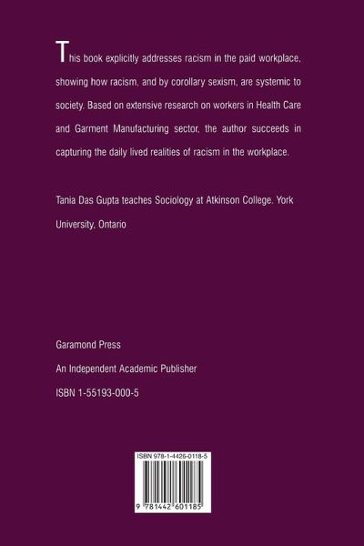 Preface Chapter 1: Theoretical Framework: Class, Racism and Gender 1. Introducing this Book 2. Marxist Approaches to the Labour Process 3. Anti-Racist, Feminist Critiques 4. Labour Market Segmentation Theories 5. Critiques to Segmentation Theories 6. Race and Gender Relations and Managerial Approaches 7. Racism and Sexism as Ideologies and Economic Relations 8. Attitudinal, Behavioural and Everyday Forms of Racism 9. Racism Preserves Cheap Labour and Powerlessness 10. Anti-Black Racism 11. Anti-Chinese Racism Chapter 2: Manifestations of Racism from Management 1. Targeting 2. Scapegoating 3. Excessive Monitoring 4. Marginalization 5. Seeing Solidarity As A Threat 6. Infantilization 7. Blaming the Victim 8. Bias in Work Allocation 9. Underemployment and the Denial of Promotions 10. Lack of Accommodation 11. Segregation of Workers 12. Co-optation and Selective Alliances 13. Tokenism Chapter 3: Racism in the Garment Industry 1. Introduction and Research Methods 2. The Big Picture: Political Economy of the Industry the of economy political picture: big> 3. Role of the Canadian State 4. Racialized and Gendered Working Class 5. Racism and Sexism on the Shopfloor Chapter 4: Racism in Nursing 1. Introduction and Research Methods 2. The Big Picture: Political Economy of Healthcare political picture: big healthcare> 3. Racism in the Wards 4. Contextualizing Everyday Racism in Hospitals Chapter 5: Resisting Racism in the Workplace 1. Unions 2. Human Rights Commissions 3. Community Actions 4. Community Organizations 5. Employment Equity 6. Community Unionism 7. Anti-Racism Education Bibliography Index