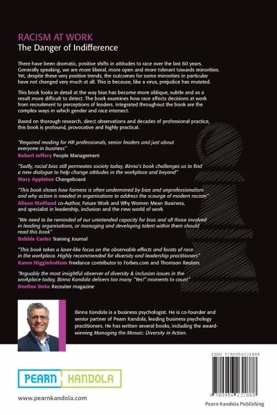 Racism has not been eradicated, despite the enormous strides taken over the past fifty years. It has mutated into new and subtler forms and has found new ways to survive. The racism in organisations today is not characterised by hostile abuse and threatening behaviour. it is not overt nor is it obvious. Today racism is subtle and nuanced, detected mostly by the people on the receiving end, but ignored and possibly not even seen by perpetrators and bystanders. Racism today may be more refined, but it harms people's careers and lives in hugely significant ways. Racism in organisations continues to exist due to our complacency and indifference. This book describes the origins and evolution of the race bias that distorts our organisations. it explores the effects of race bias. And it confronts the actions that we need to take to make organisations truly equal. Racism is not a thing of the past - yet. But we can make it so.