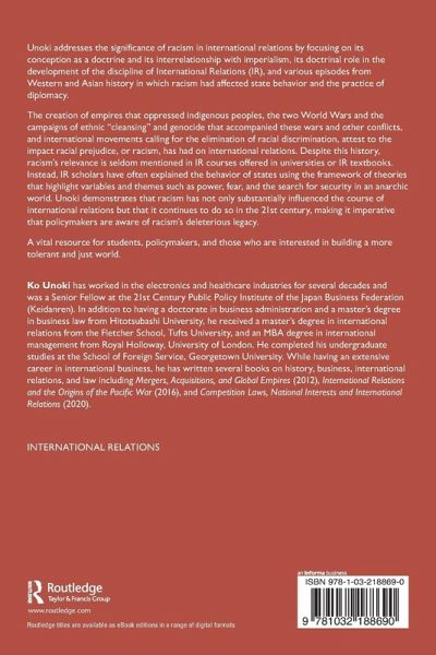 The creation of empires that oppressed indigenous peoples, the two World Wars and the campaigns of ethnic "cleansing" and genocide that accompanied these wars and other conflicts, and international movements calling for the elimination of racial discrimination, attest to the impact racial prejudice, or racism, has had on international relations. Despite this history, racism's relevance is seldom mentioned in IR courses offered in universities or IR textbooks. Instead, IR scholars have often explained the behavior of states using the framework of theories that highlight variables and themes such as power, fear, and the search for security in an anarchic world. Unoki demonstrates that racism has not only substantially influenced the course of international relations but that it continues to do so in the 21st century, making it imperative that policymakers are aware of racism's deleterious legacy.