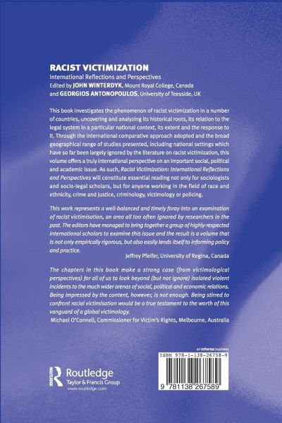 This book investigates the phenomenon of racist victimization in a number of countries, uncovering and analyzing its historical roots, its relation to the legal system in a particular national context, its extent and the response to it. Through the international comparative approach adopted and the broad geographical range of studies presented, it offers a truly international perspective on an important social, political and academic issue.