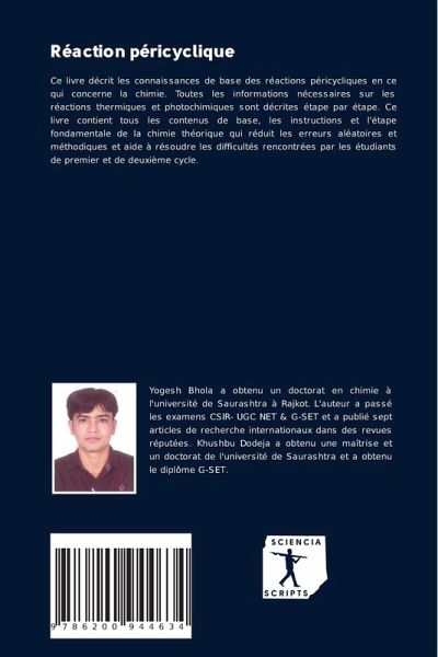 Ce livre décrit les connaissances de base des réactions péricycliques en ce qui concerne la chimie. Toutes les informations nécessaires sur les réactions thermiques et photochimiques sont décrites étape par étape. Ce livre contient tous les contenus de base, les instructions et l'étape fondamentale de la chimie théorique qui réduit les erreurs aléatoires et méthodiques et aide à résoudre les difficultés rencontrées par les étudiants de premier et de deuxième cycle.