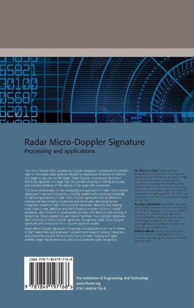 Radar Micro-Doppler Signatures: Processing and applications concentrates on the processing and application of radar micro-Doppler signatures in real world situations, providing readers with a good working knowledge on a variety of applications of radar micro-Doppler signatures.