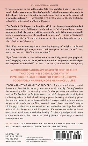 A groundbreaking guide for self-healing enthusiasts that teaches a fresh therapeutic approach for a meaningful life by combining science, creativity, psychology, and insightful personal growth tools. "Readers willing to put in the work, actively explore their experiences, and tap into their creativity will be rewarded." - Booklist Winner, 2024 International Impact Book Award for Psychology and Self-Help First Place, The Bookfest Awards Winner, Psychology/Mental Health Category, 2024 International Book Awards The common problem in our society is precisely this: We are not as alright as we seem. Trauma, physical and mental illness, and disembodied value systems are at an all-time high across our communities. Additionally, issues of pervasive social justice imbalances, inequality for marginalized communities, and painfully charged political dynamics clearly demonstrate a large-scale desire for collective change and transformation. Society is waking up to a new reality without the shackles and numbness that have previously limited our potential. This book is the timely resource to support the expansive elevation humanity demands. The Radiant Life Project answers the yearning for large-scale repair with the intention of mending the world by first cultivating radical wellbeing within each individual. This book teaches a fresh and accessible approach to self-healing with deep compassion, skillful expertise, and exquisite strategies for intentional progression toward improved mind-body-soul wellness. In truth, Fine is not going to cut it. Surviving is not thriving. There is no substitute for the aliveness that follows when a person actively nurtures their inner pilot light so it can roar with brilliance. The Radiant Life Project is a groundbreaking guide for this essential inner-work that ignites inner-radiance through Kate King's unique therapeutic approach and engaging experiential offerings. This is a unique and timely masterclass based on Kate's over fifteen years of clinical psychotherapeutic practice and humble life learnings that combines science, psychology, spirituality, and creativity to activate powerful personal transformation. Beyond intellectual stimulation and soulful inspiration, The Radiant Life Project offers practical tools and unique exercises that will spark deep sustainable healing. For those who have experienced years of therapy and personal development without regularly feeling the resonance of freedom and joy, this book is the missing piece you've been looking for to supercharge your self-improvement success.