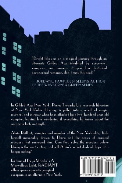 In Gilded Age New York, Perry Threadgill, a research librarian at New York Public Library, is pulled into a world of magic, murder, and intrigue when he is attacked by a two-hundred year old vampire. Previously untapped magic allows Perry to fend off his attacker, and leaves him wondering if everything he knows about the arcane is fact, not myth. Alain Paillart, vampire and member of the New York elite, finds himself inexorably drawn to Perry and the series of magical murders that surround him. Can they solve the murders before Perry is the next victim, and will Alain's secret dash all hope of a happy ending? For fans of Freya Marske's A Marvellous Light or KJ Charles' The Magpie Lord, Words of Power offers queer romantic, magical escapism in an alternative New York.
