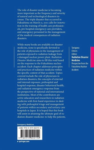While many books are available on disaster medicine, none is specifically devoted to the role of physicians in the management of patients exposed to radiation leakage from a damaged nuclear power plant. Radiation Disaster Medicine aims to fill this void based on the response to the Fukushima nuclear accident. Each chapter addresses principles and practices of radiation medicine within the specific context of that accident. Topics covered include the role of physicians in radiation disasters, the concepts of external and internal exposure, prehospital and hospital response, disaster behavioral health, and radiation emergency response from the perspective of national and international institutions. Most of the contributors are active educators and researchers in radiation medicine with first-hand experience in dealing with prehospital triage and management of patients within secondary and tertiary care hospitals in Japan.